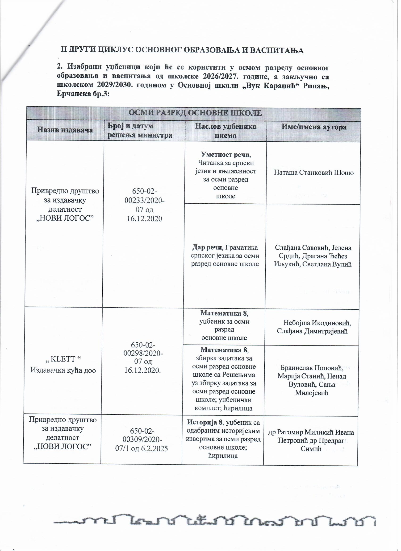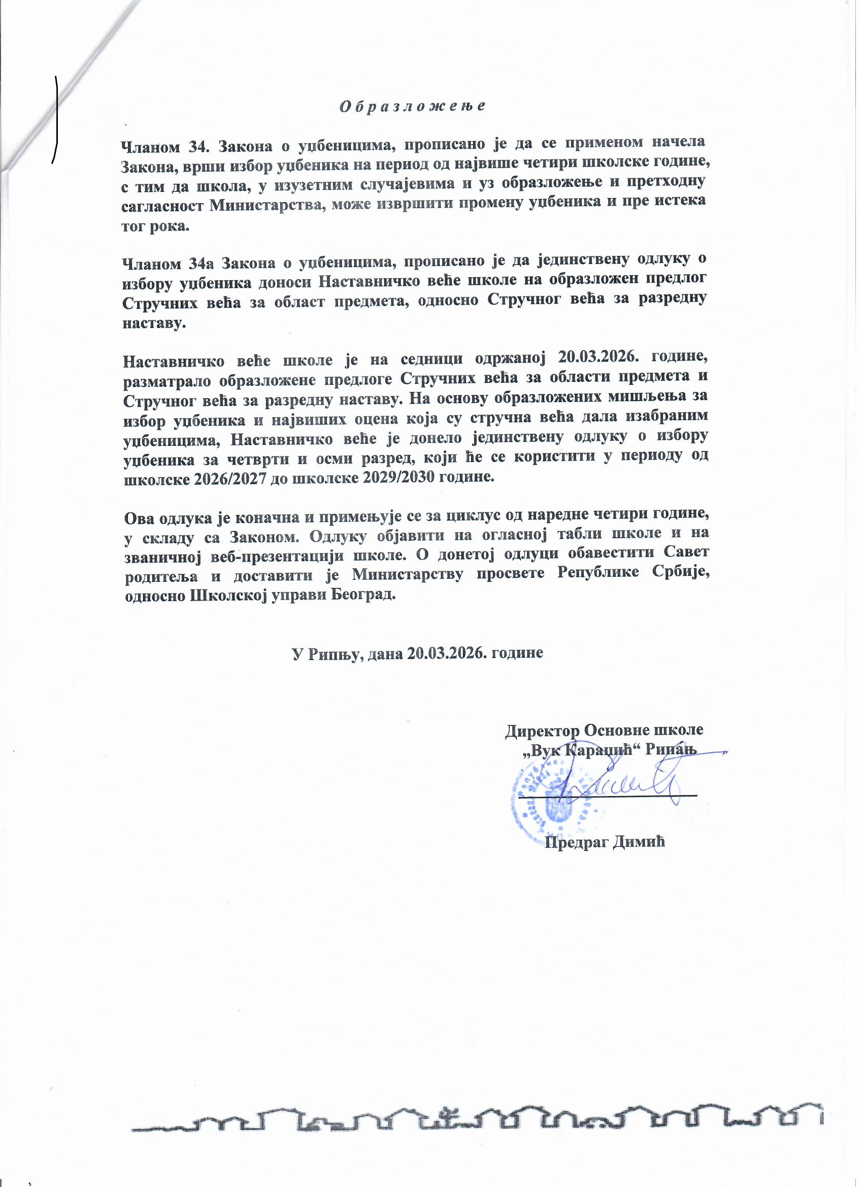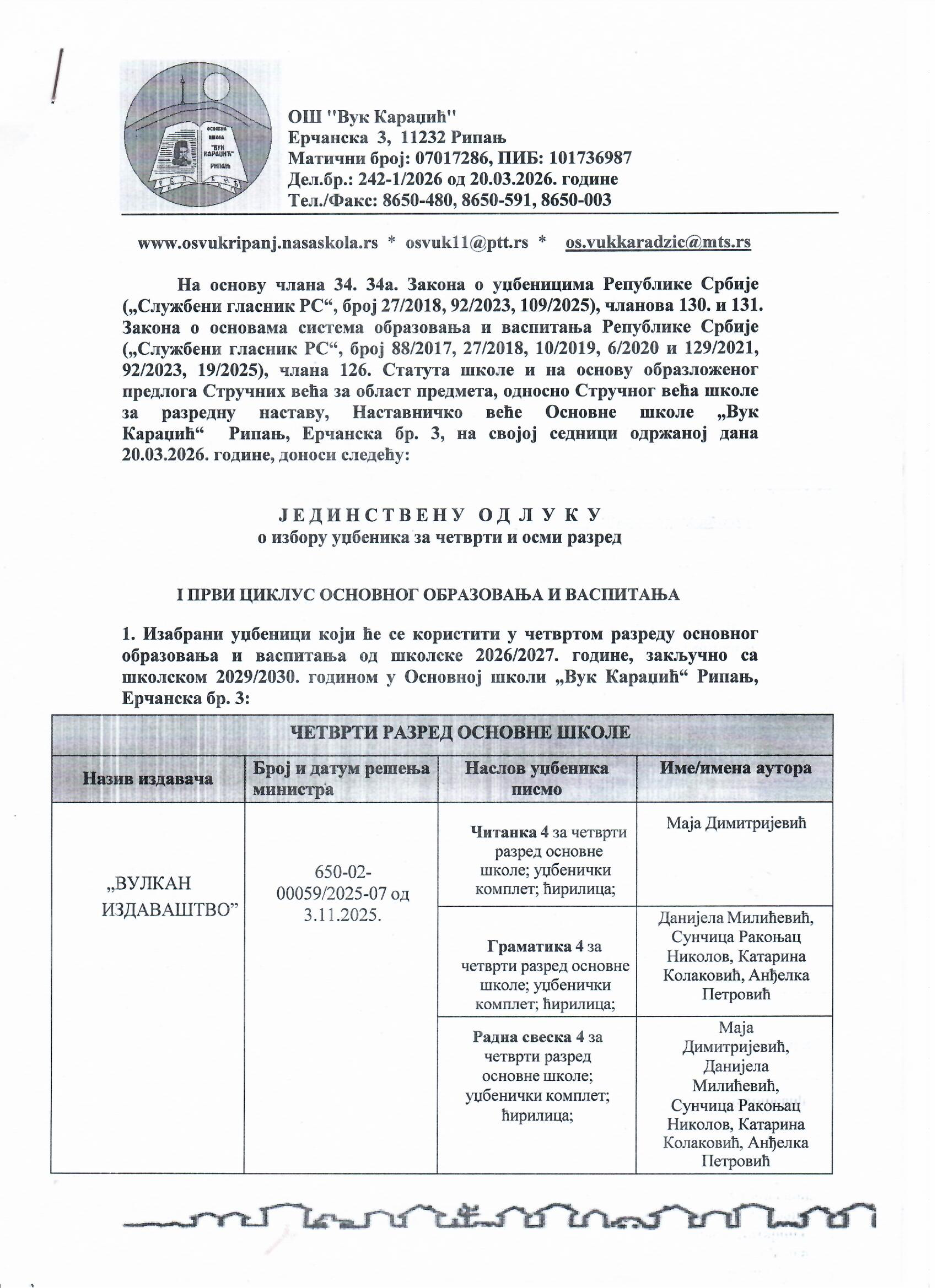Одлука о избору уџбеникаДатум: 09. Mart 2026 18:04 Категорија: Новости