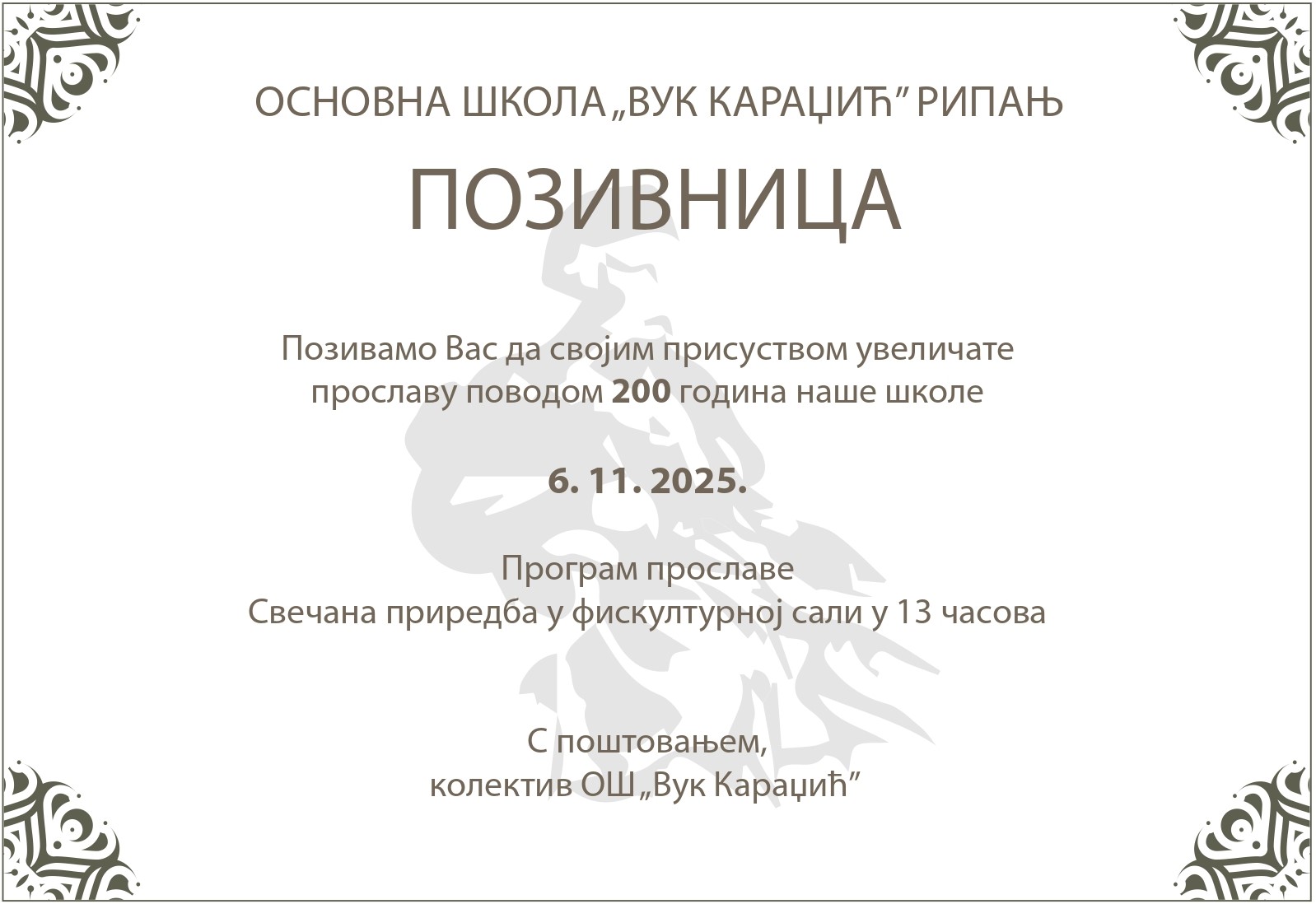 Дан школе - позивницаДатум: 31. Oktobar 2025 20:48 Категорија: Новости![]() |